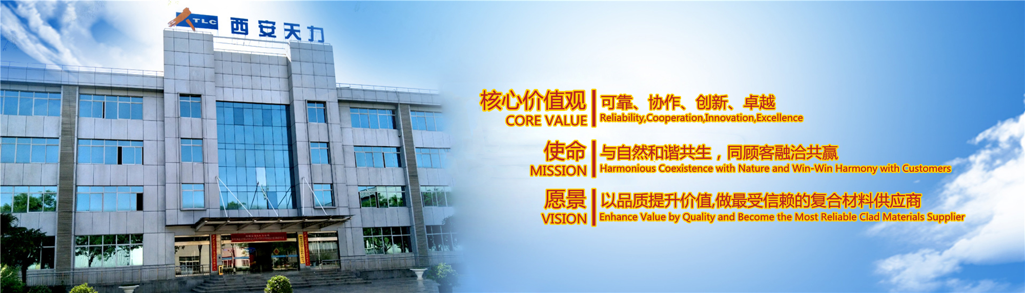 西安天力金屬復合材料股份有限公司是西北有色金屬研究院(集團)產業化上市公司“西部材料”控股的獨立法人公司,是專業從事層狀金屬復合材料研究及生產的高新技術企業,成立于2003年12月25日,位于西安經濟技術開發(fā)區涇渭工業園,注冊資本10895萬股,擁有生產廠房23000余平米,各類生產設備200余臺套及兩塊條件優(yōu)越的爆炸復合場地,形成年產25000噸層狀復合材料的生產加工能力……